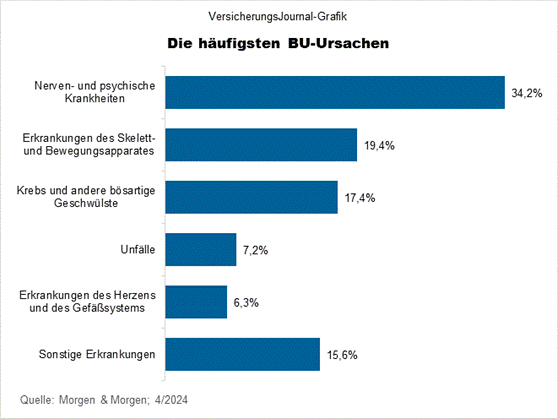 Jeder 4. wird in seinem Arbeitsleben zumindest vorübergehend berufsunfähig.1 Dabei führen Unfälle in nur etwa 7 % der Fälle zu einer Berufsunfähigkeit – psychische Krankheiten oder Erkrankungen am Skelett- und Bewegungsapparat sind die häufigsten Ursachen. Tendenz steigend.